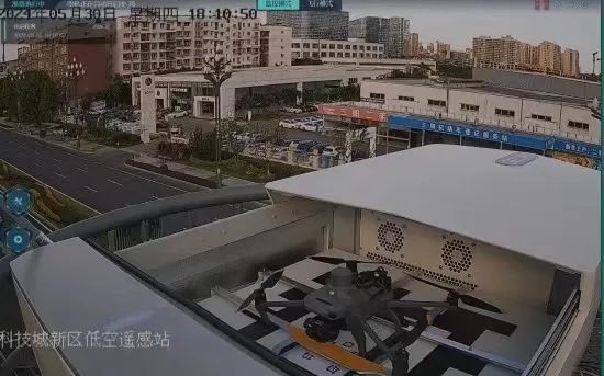 在新區(qū)有這樣一座特殊的“機(jī)場”——它坐落在園興西街的路燈桿上,外形像一個“四方盒子”。“盒子”打開,停放在里面的無人機(jī)即可啟動騰空,按設(shè)定航線執(zhí)行巡檢任務(wù)。